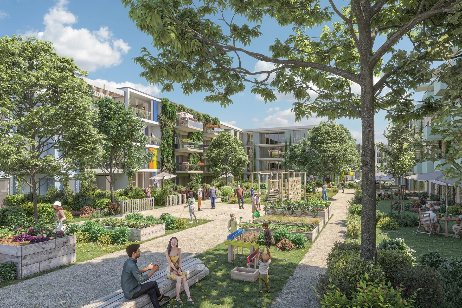 Unsere Visualisierungen machen diese Zukunft schon heute erlebbar. Sie übersetzen abstrakte Bebauungspläne, Zahlen und Grundrisse in konkrete Bilder einer lebendigen, nachhaltigen und urbanen Nachbarschaft. Straßenräume, Grünflächen, Quartiersplätze und Wohnhöfe werden greifbar – Interessentinnen und Interessenten können sich bereits vor dem ersten Spatenstich vorstellen, wie sich das Leben in Dietenbach anfühlen wird.