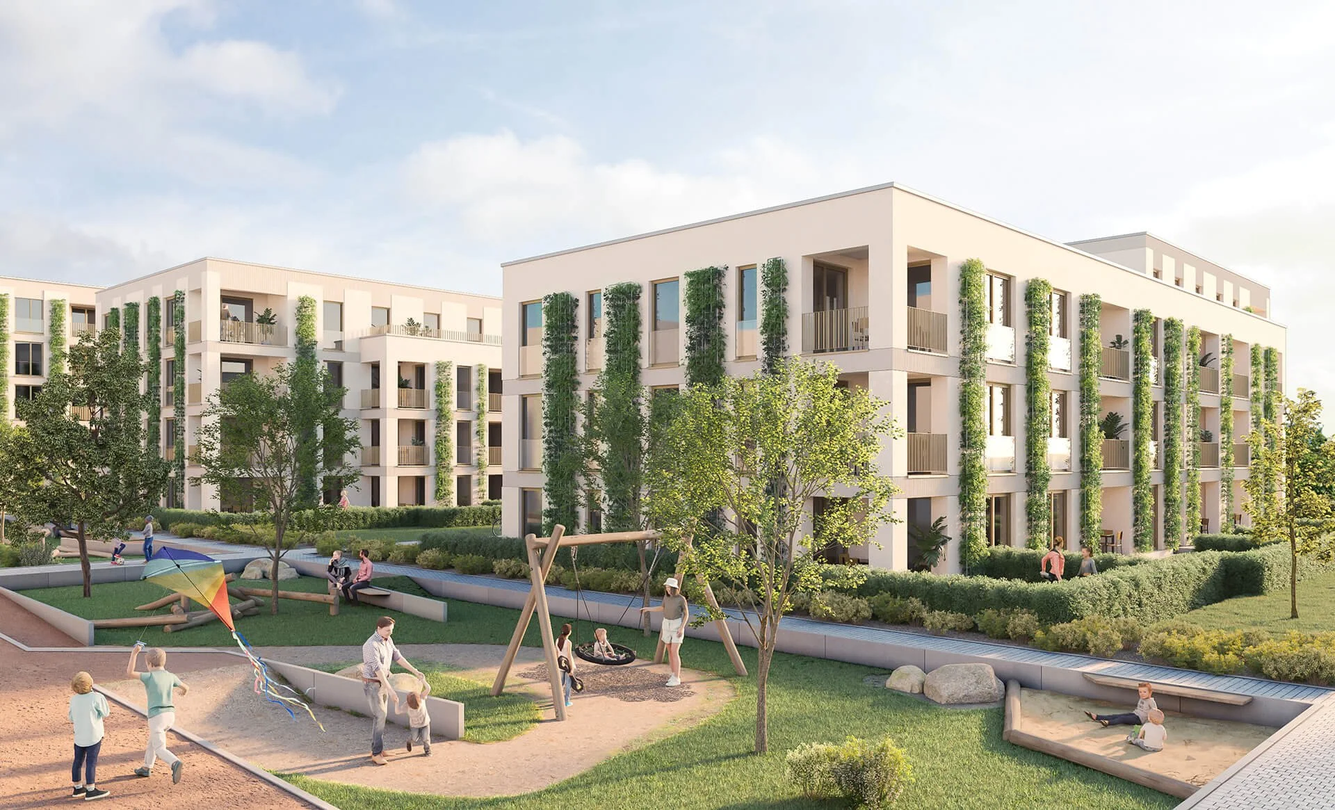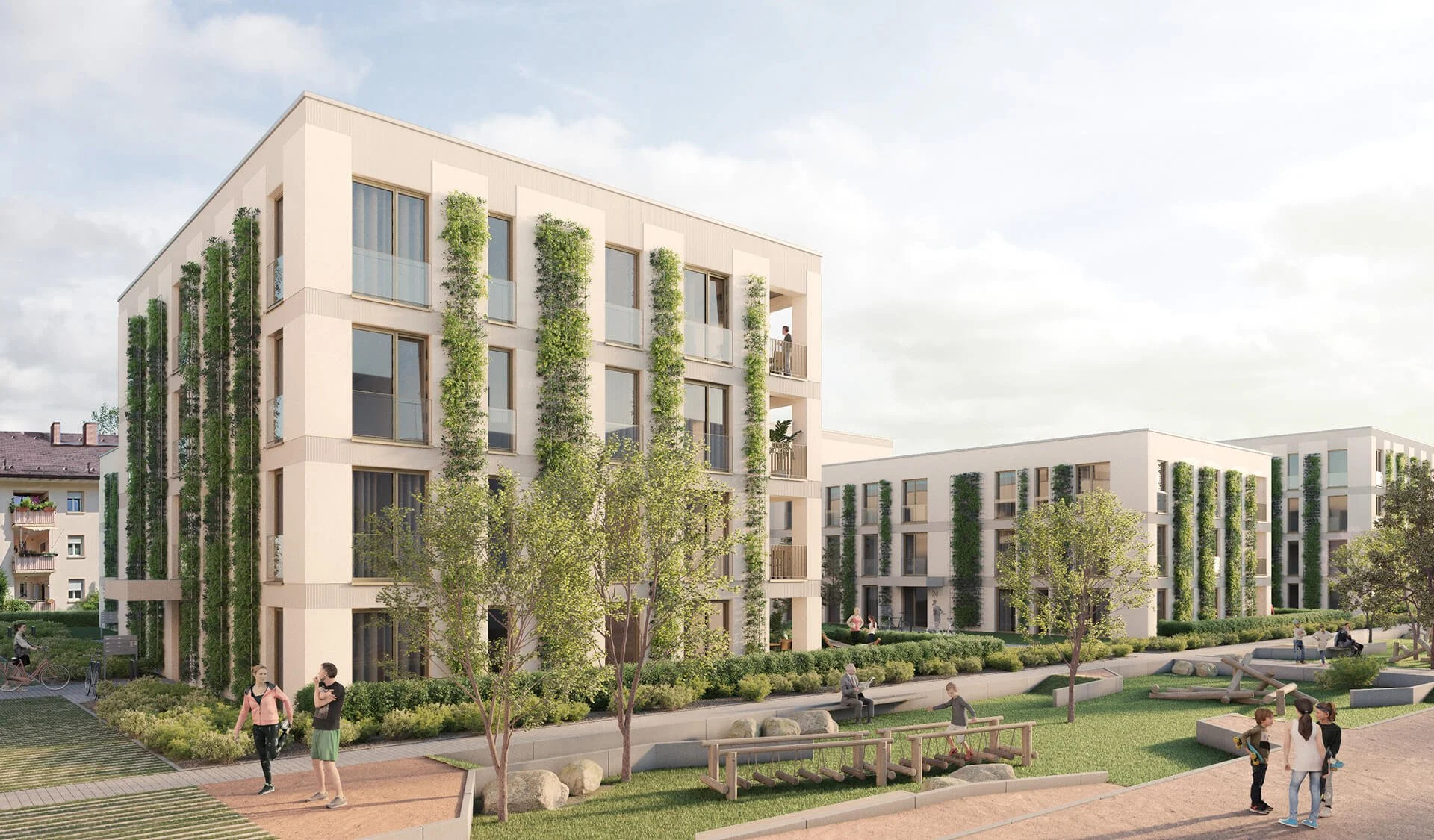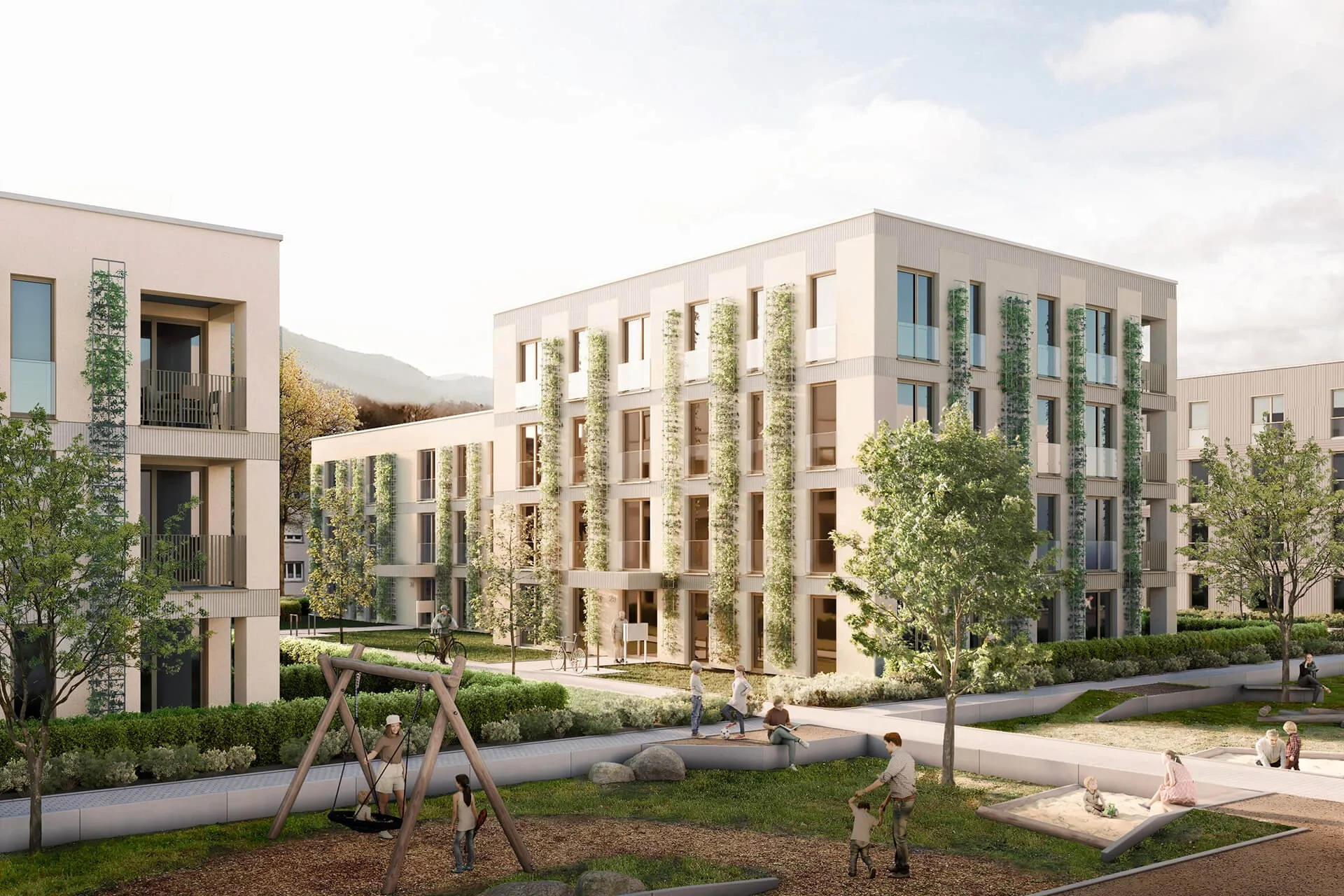 Unsere Visualisierungen unterstützen dabei, die städtebauliche Entwicklung sowie die architektonische Gestaltung klar und anschaulich zu vermitteln. Sie zeigen die verschiedenen Gebäude, Freiräume und Wohnsituationen und geben einen ersten Eindruck davon, wie sich das Quartier in den bestehenden Stadtteil einfügen wird.