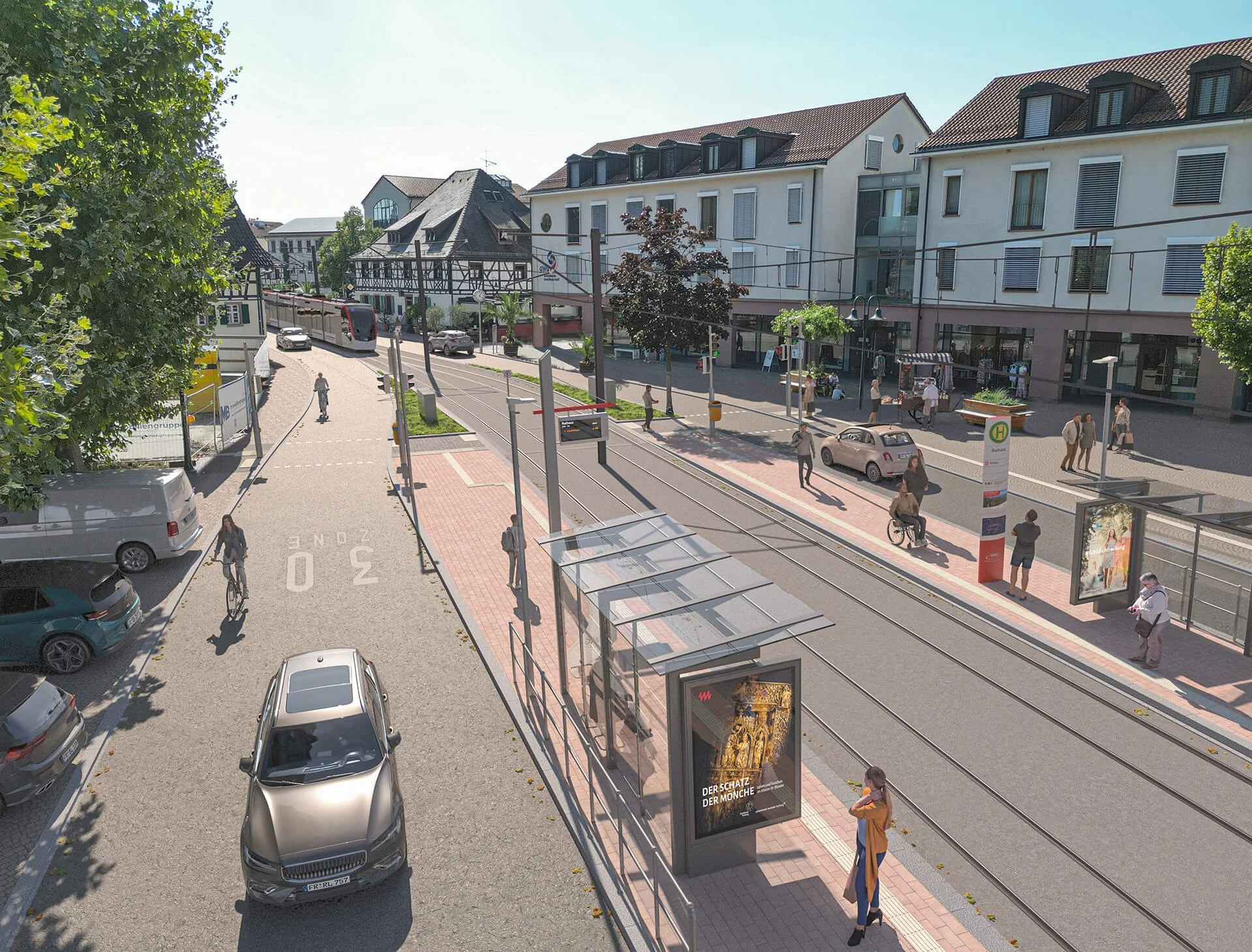 Im Auftrag der Gemeinde Gundelfingen durften wir 11 Visualisierungen der vorhandenen Planung von 1995 anfertigen, damit sich die Bürger ein realistisches Bild von den Auswirkungen der bestehenden Planung auf das Ortsbild und die Verkehrssituation entlang der Streckenplanung machen kann.