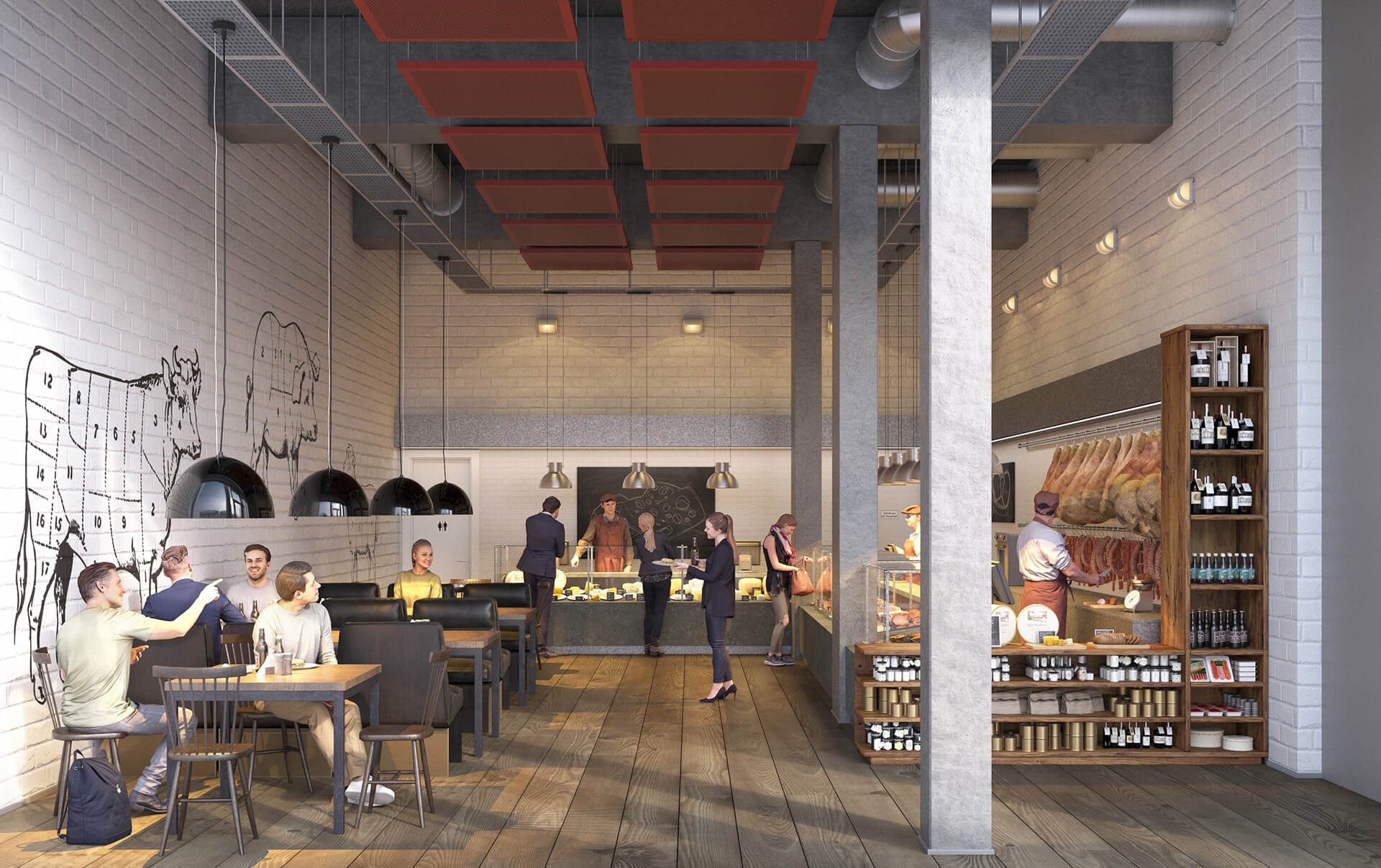 Im Rahmen des Projekts haben wir eine Reihe hochwertiger Innenraumvisualisierungen erstellt, die die vielfältigen Nutzungsmöglichkeiten und das zeitgemäße Design eindrucksvoll in Szene setzen. So können zukünftige Nutzer und Investoren schon heute einen realistischen Eindruck vom Ambiente und der Atmosphäre der Markthalle gewinnen.