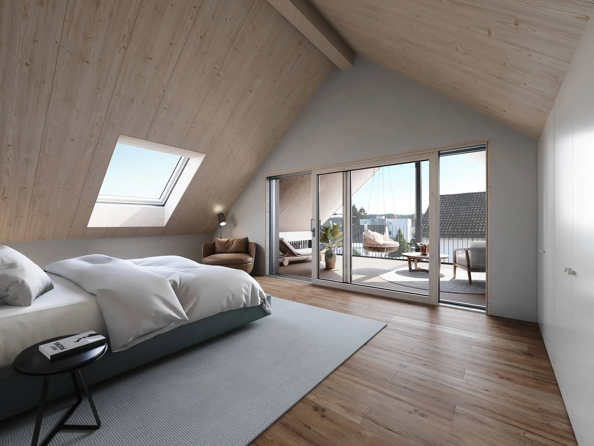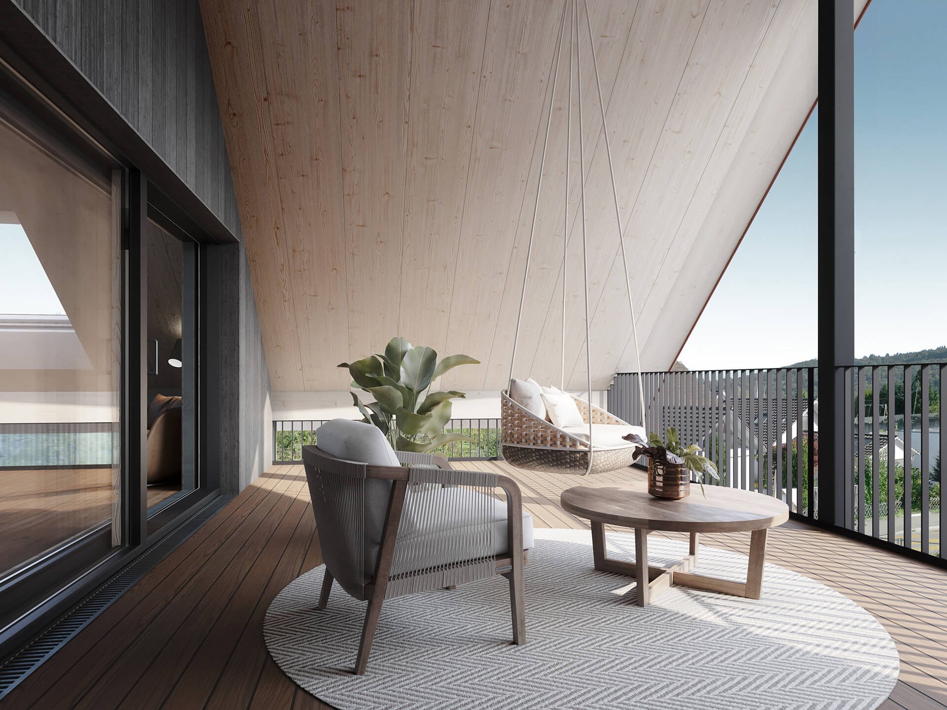 Für die Holzbaufirma Hübscher aus Beringen haben wir mehrere Visualisierungen für ein Immobilienprojekt in der Kohlfirststrasse erstellt. Dazu zählen eine Wohnraumperspektive, ein Schlafzimmerblick, eine Badezimmervisualisierung, ein Bürorendering, eine Loggiaansicht sowie eine Aussenperspektive.