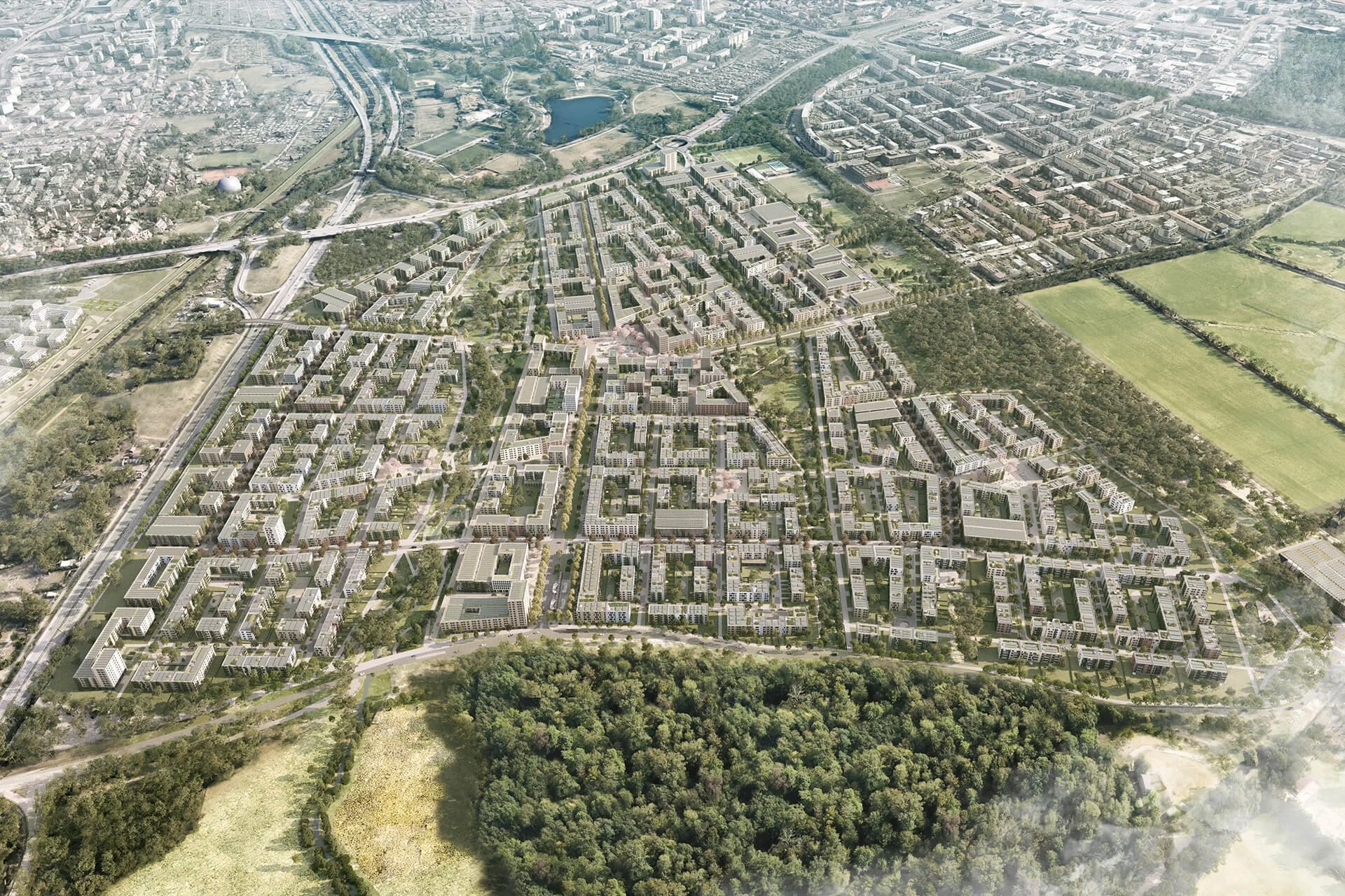 Für die Stadt Freiburg durften wir mehrere städtebauliche Visualisierungen für den neuen Stadtteil Dietenbach realisieren. Ziel war es, die Dimensionen sowie die räumlichen Qualitäten dieses bedeutenden Stadtentwicklungsprojekts anschaulich und möglichst realitätsnah zu vermitteln.