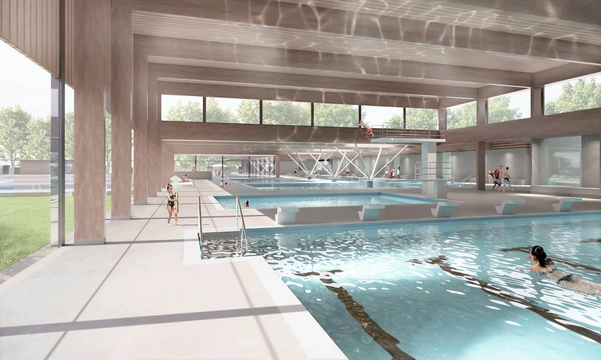 Unsere Visualisierungen zu dem Wettbewerb Neubau des Kombibads Herzogenried in Mannheim